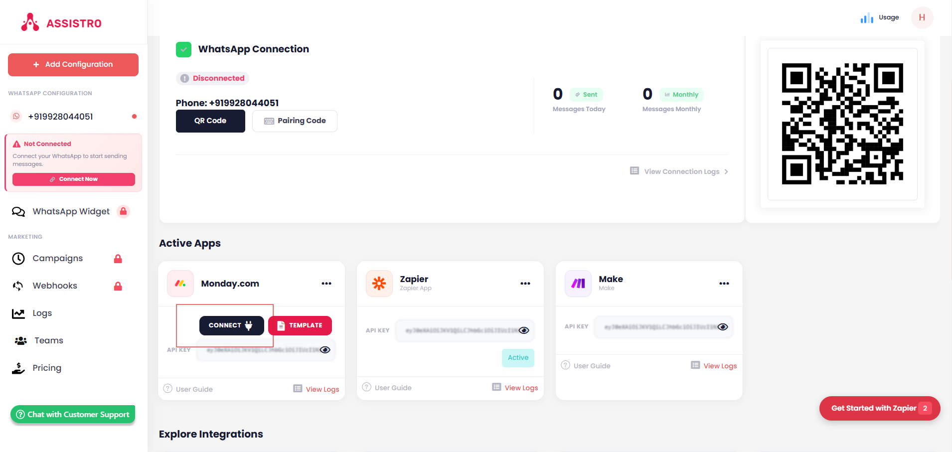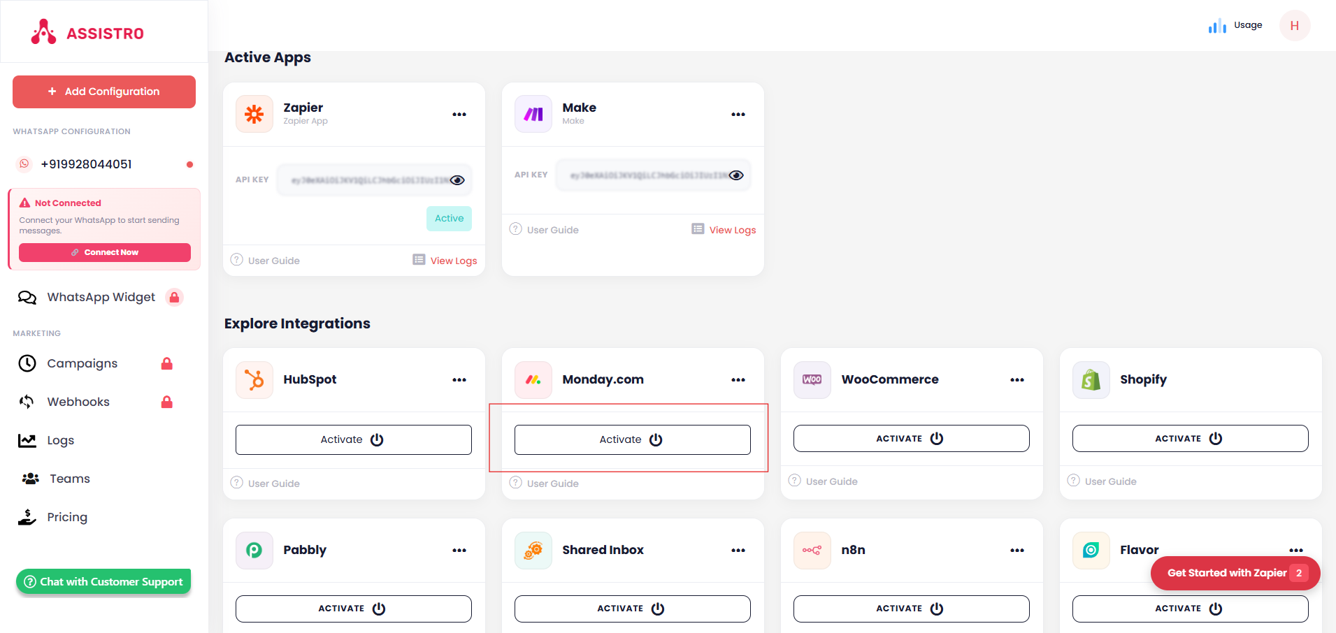 Once you select your Monday account, your application is connected  with Monday .Now you are all set to use the WhatsApp API with Monday workflows & Automation.