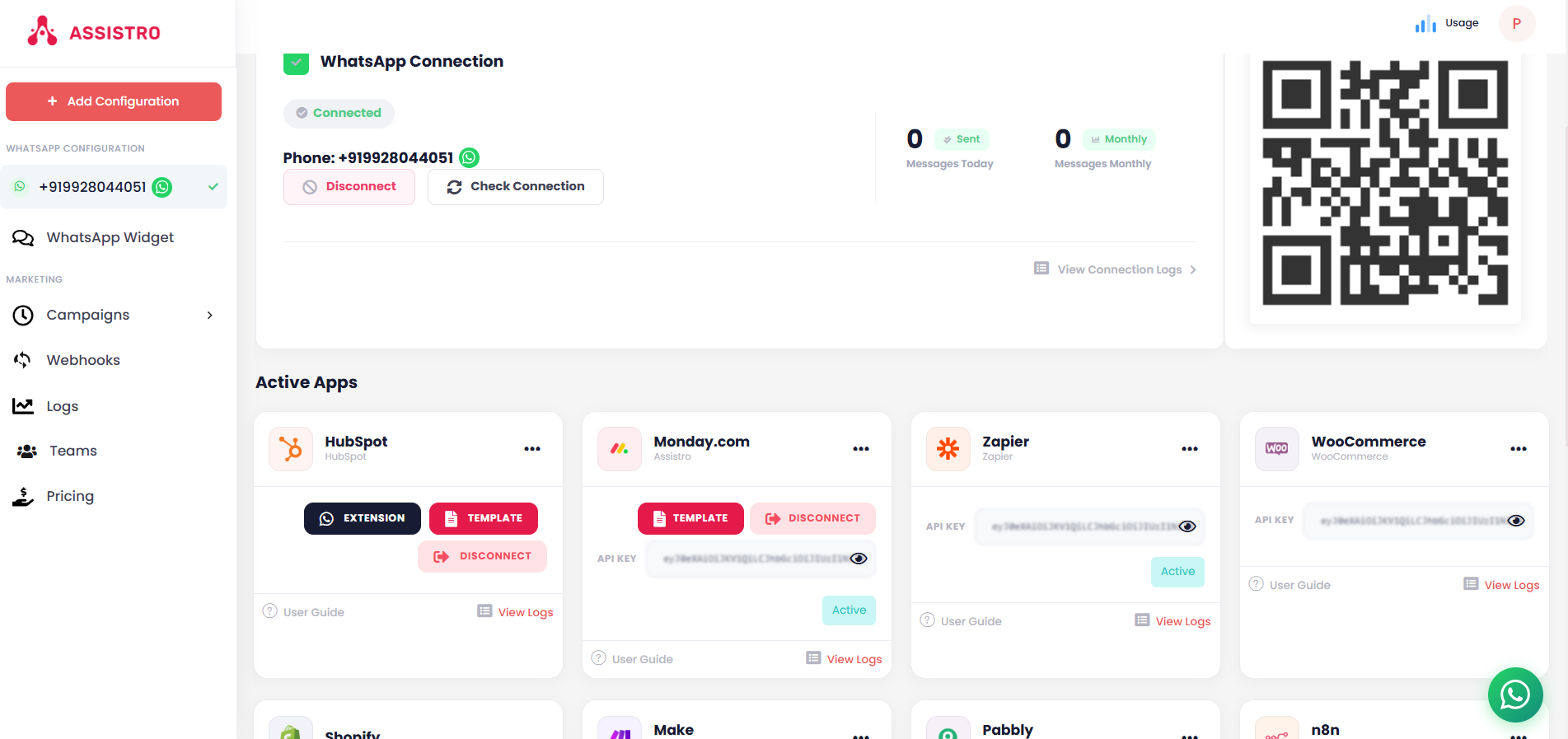 Once your WhatsApp is connected, Activate the HubSpot app.