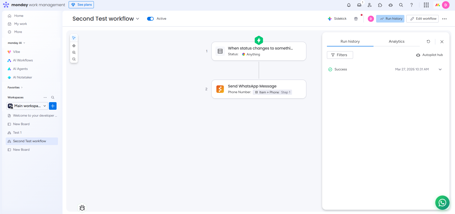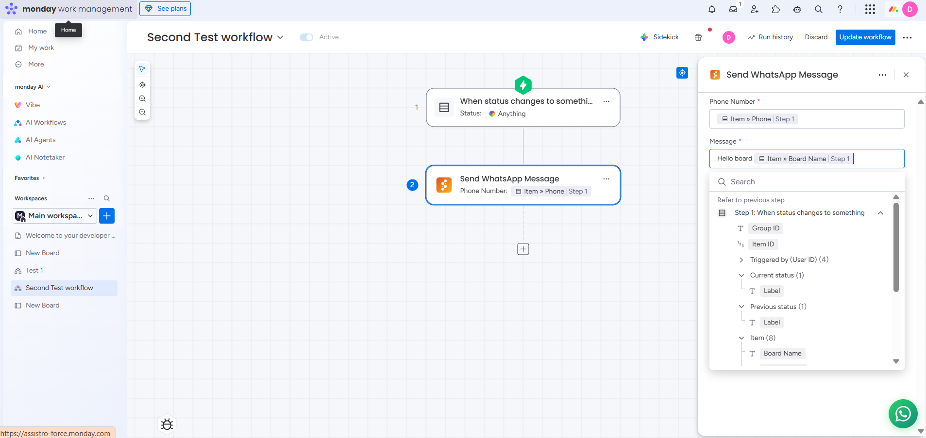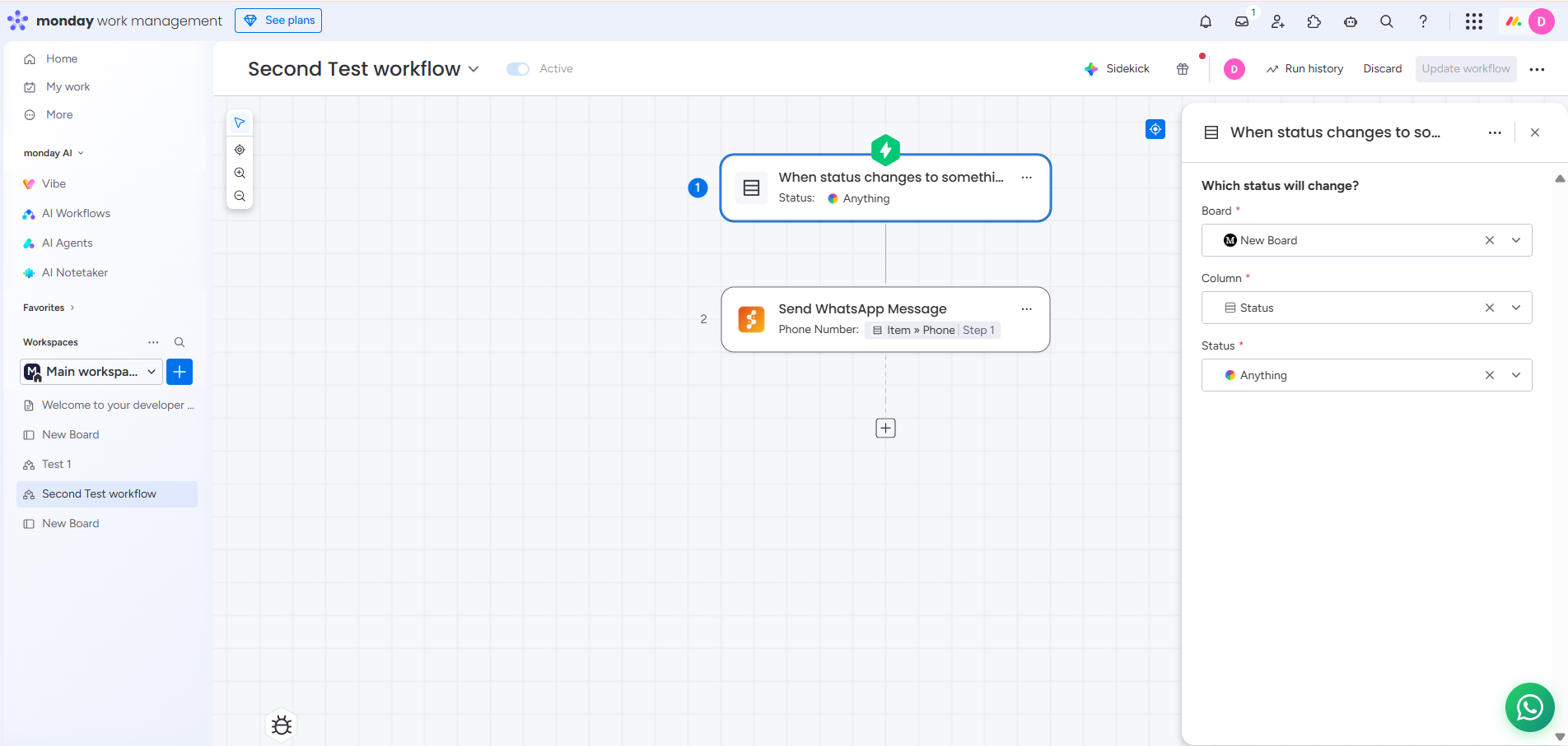 That’s it , now a WhatsApp message will be sent to the contact, whenever you status changes on board in Monday