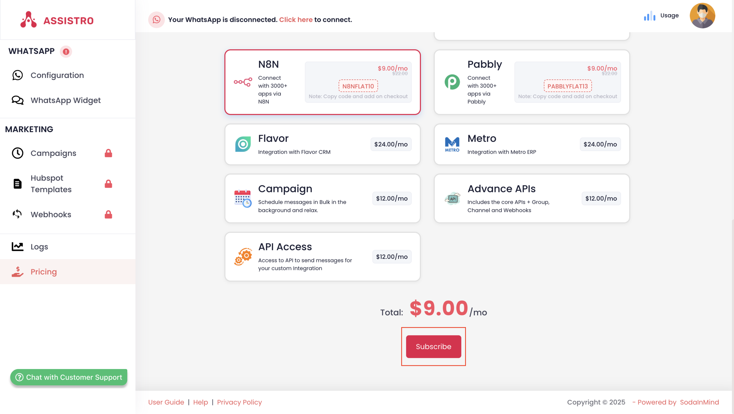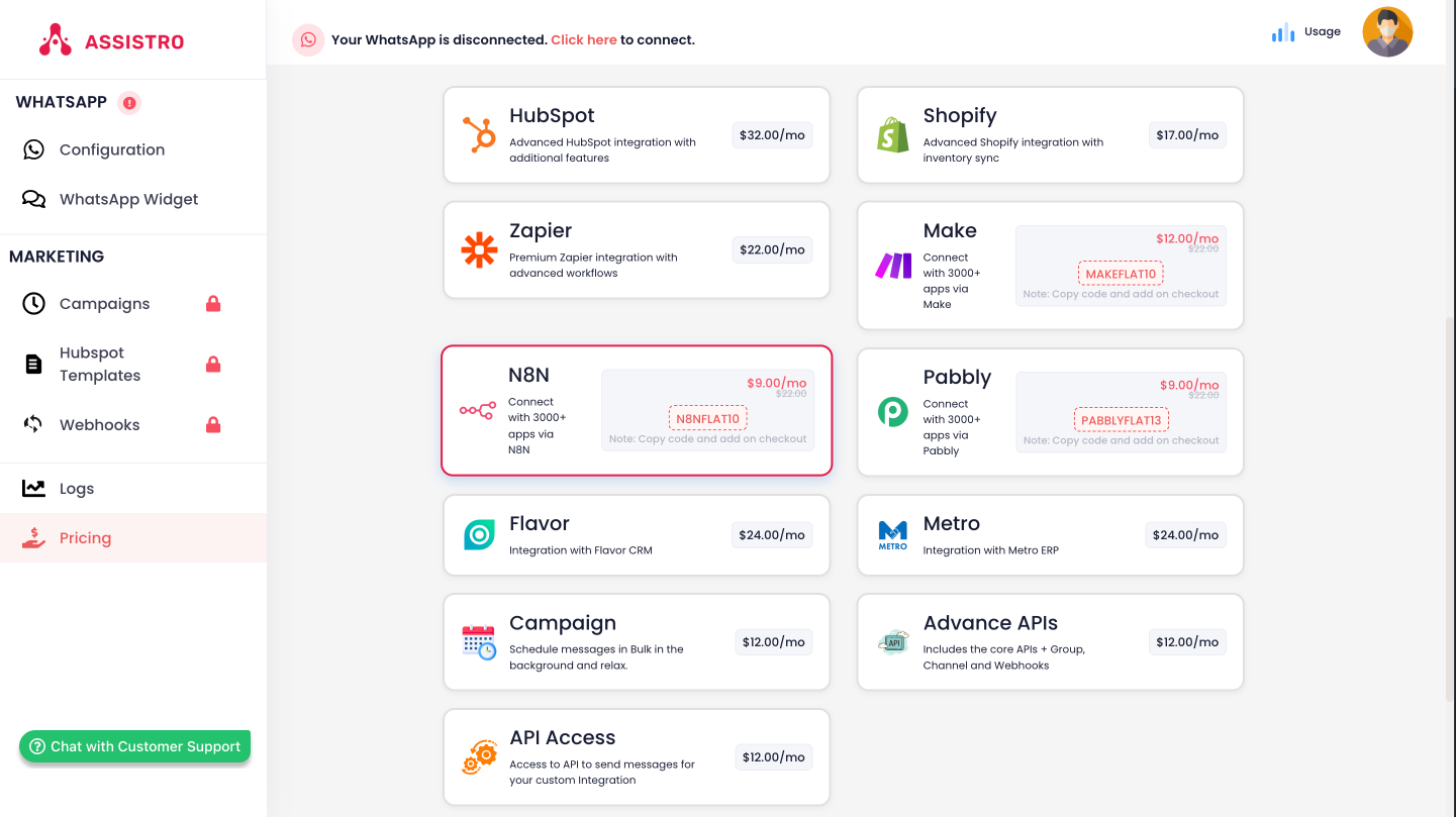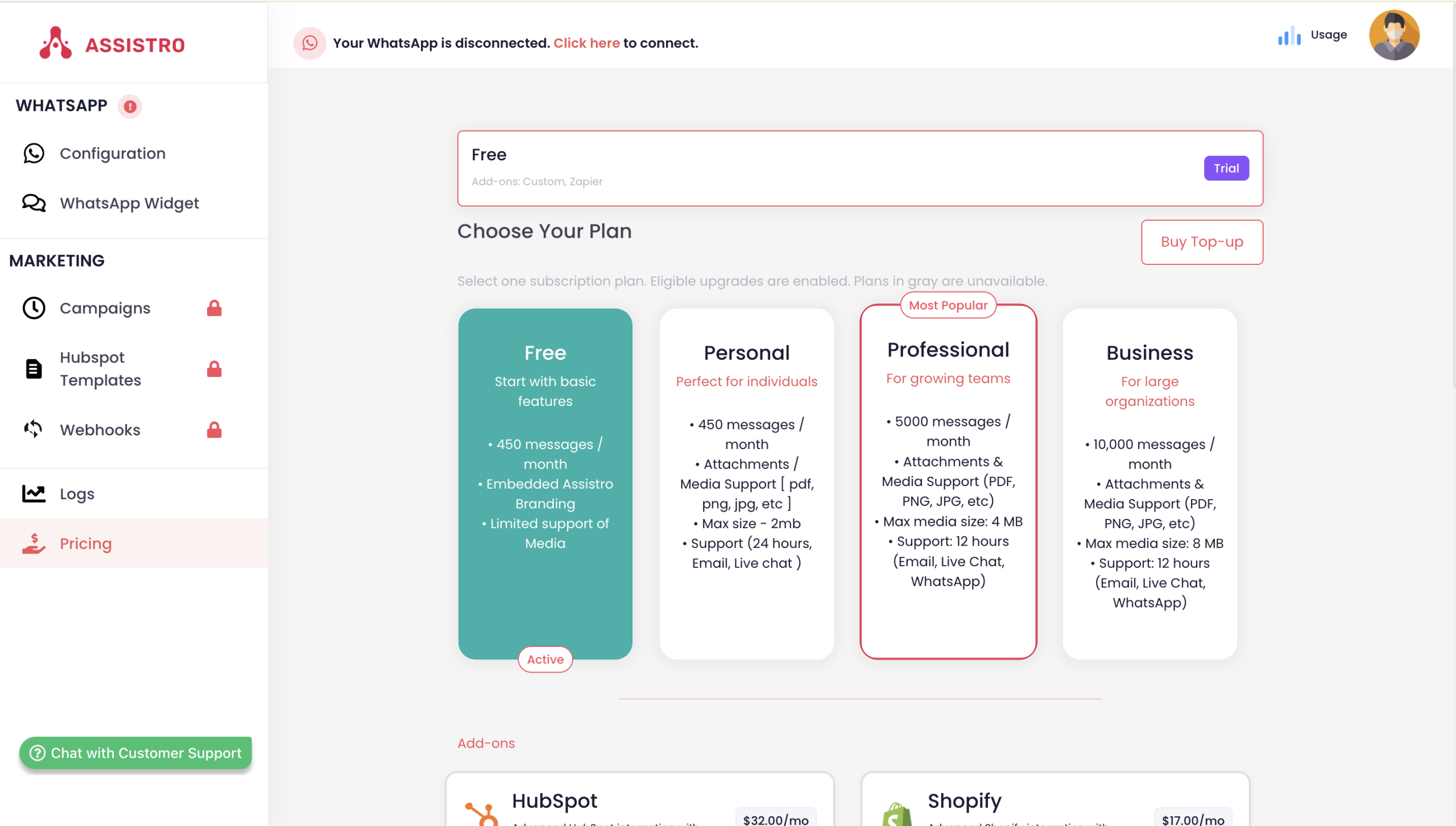 To unlock more message credits, campaigns, or premium features, follow these steps to upgrade your plan: