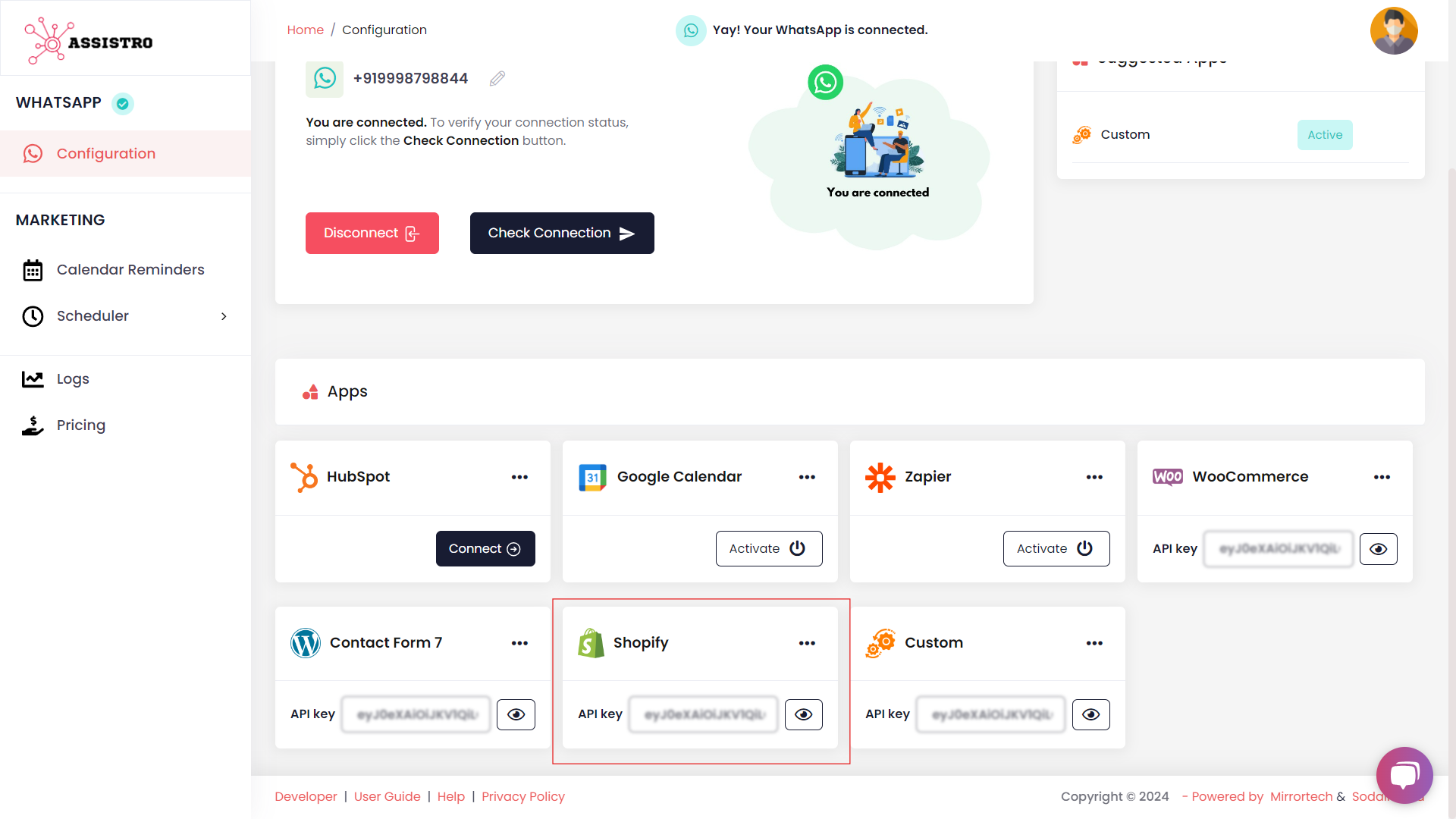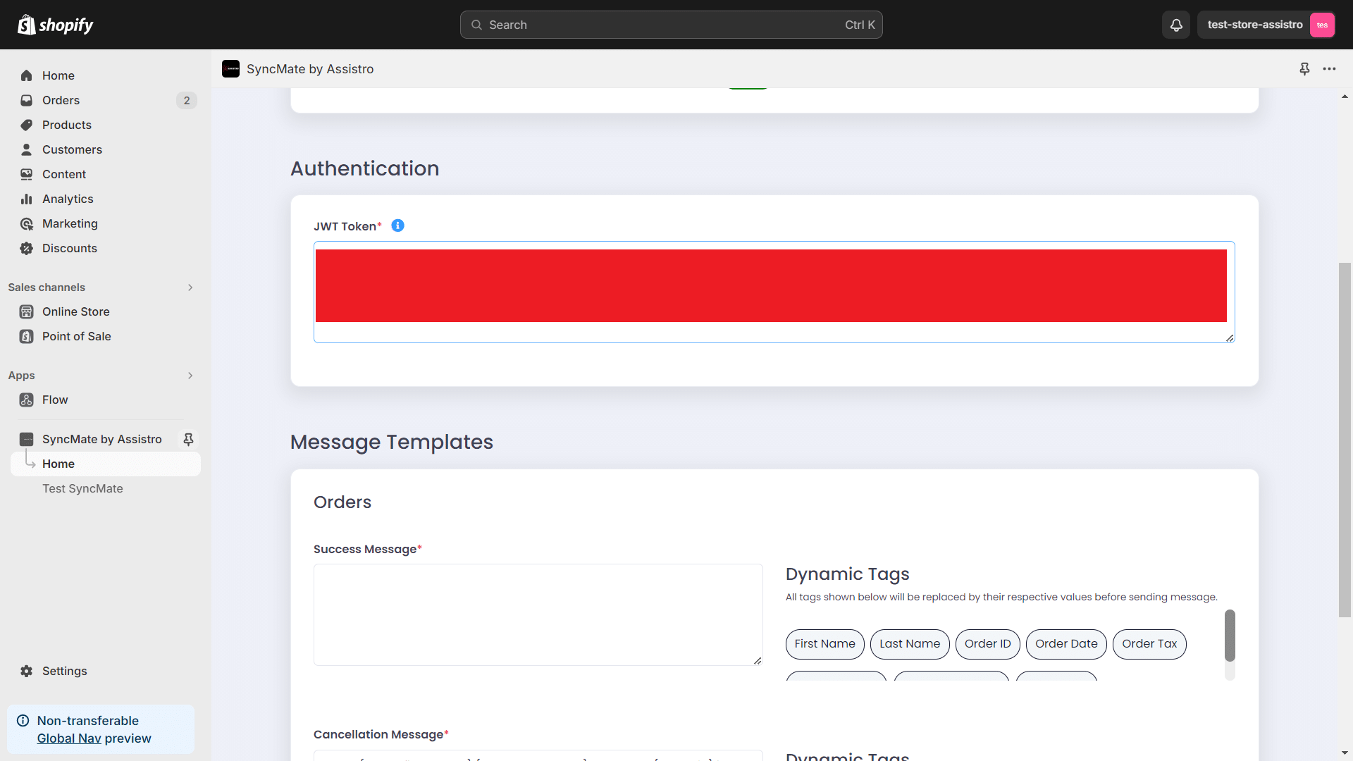 Now go back to your Shopify application and paste the token in the jwt token field.
