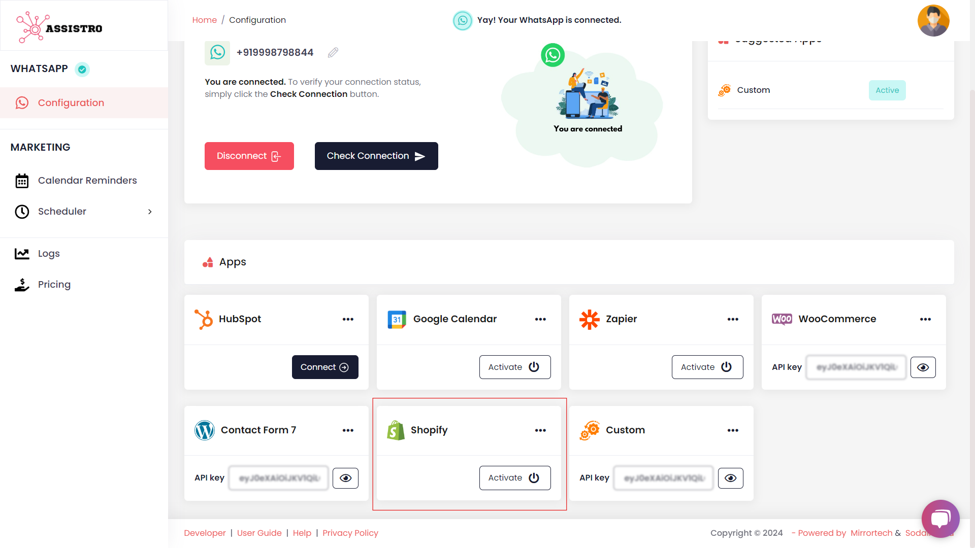 First of all, you will need to connect your WhatsApp with SyncMate, follow the Configuration guide.
