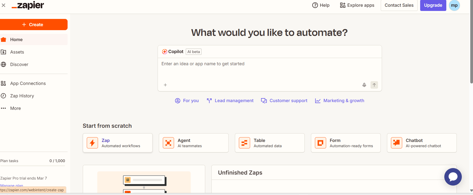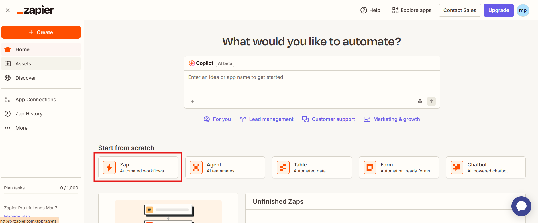 Firstly, open your Zapier account and ensure that your account is connected to Assistro. If not, then follow our guide.