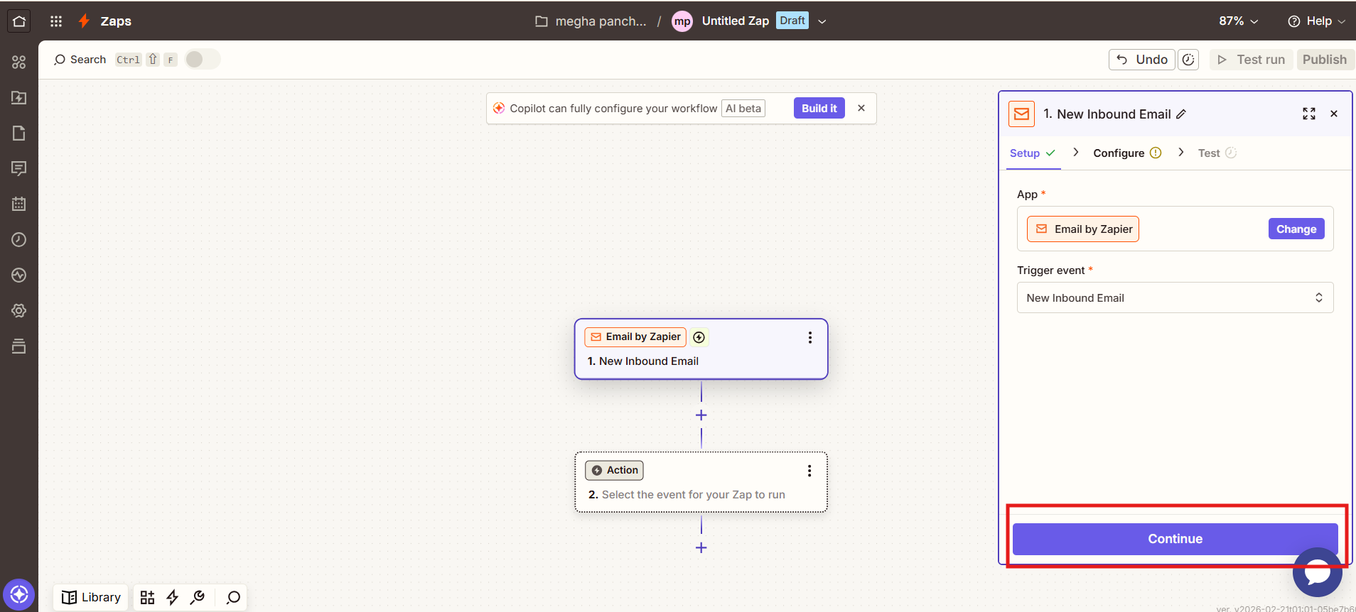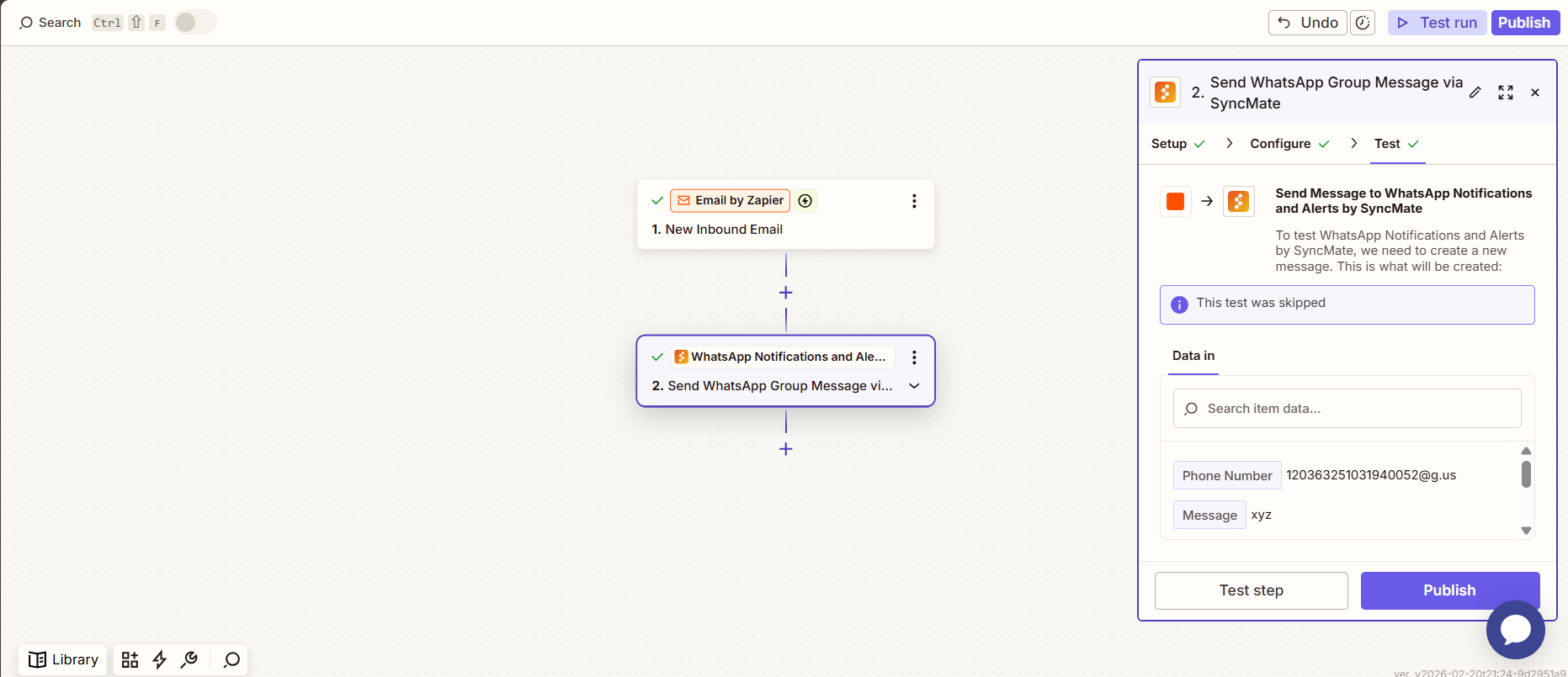 Now, if you want, you can test your Zap, then select “Test step”; otherwise, select “Skip test”.